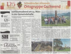Ortsgruppe Gschwend des Schwäbischen Albvereins feierte ihr 125-jähriges Bestehen